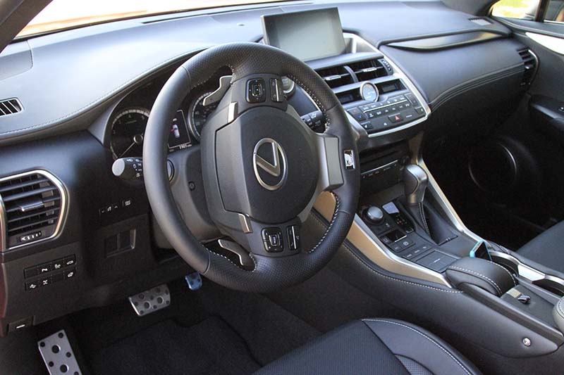The 2017 Lexus NX 200t F Sport has the aggressive exterior and the luxurious interior. The nicest feature is an infotainment system that is controlled with a touchpad instead of the mouse-like control. My tester was equipped with a perforated leather-trimmed interior, a leather-trimmed heated steering wheel and leather-trimmed shift knob, and a power liftgate.